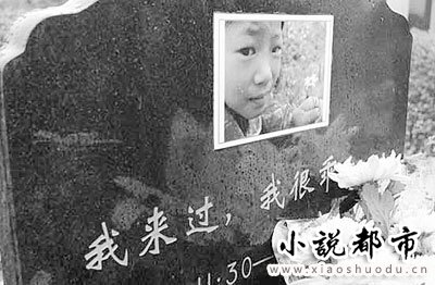她墓地有她一张笑吟吟的照片,碑文正面上方写着:“我来过,我很乖(1996.11.30.--2005.8.22)”